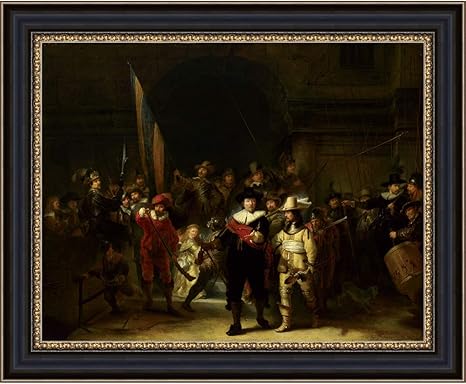Amazon.com: UpperPin The Nightwatch by Rembrandt Harmenszoon Van Rij, Giclee Print Framed Painting on Canvas for Wall Decoration, Black Frame, Size 30" x 24", Ready to Hang: Posters & Prints